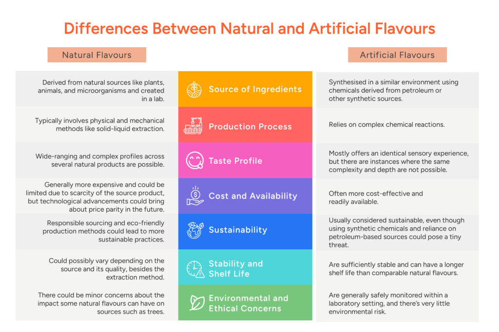 So, what exactly separates the two flavours? Do they taste different? Are artificial flavours bad? Is one costlier than the other? We cover all that, dissecting the subtle differences between natural and artificial flavours and helping you determine what works best for your products.